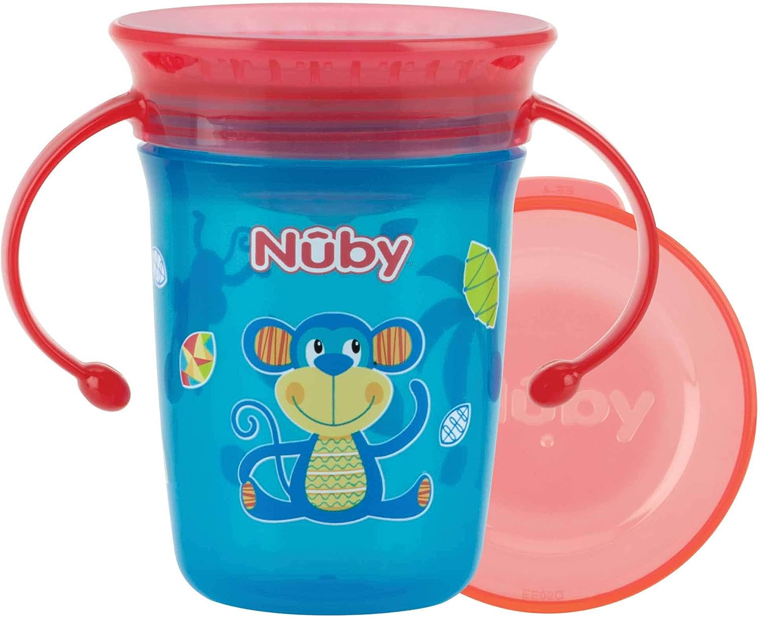 360° mugg med handtag som är speciellt utvecklad för att förenkla övergången från mugg till glas. Runt hela muggen finns extra mjuk, spillfri silikonkant som öppnas upp när munnen pressas mot muggen och stänger sig när barnet slutar dricka. Med lock, kan maskindiskas.