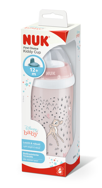 NUK Kiddy Cup är en praktisk drickflaska från populära NUK. Drickflaskan har en extra tålig drickpip, tillverkad i polypropenen som är stark nog att klara av om barnet tuggar på den. Dessutom är den spill fri och har både skyddslock samt clips som håller fast flaskan i kläder eller i väskan.
