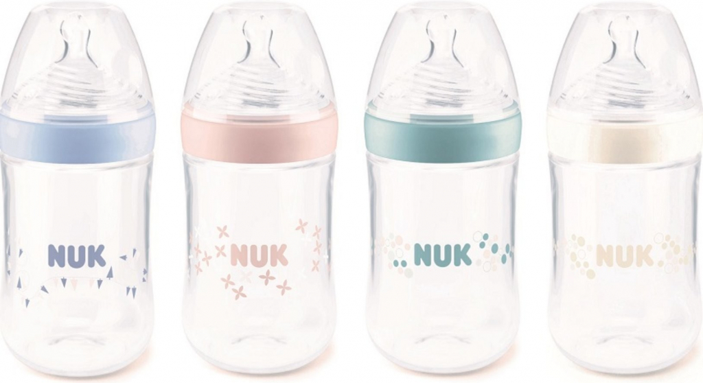 NUK Nature Sense Temperature Control PP Bottle Silicon 260 ml kommer nu med temperaturindikator, ett praktiskt hjälpmedel för föräldrar. Indikatorn är avsedd att vara ett extra hjälpmedel för att avgöra temperaturen på maten. Funktionen ersätter inte det traditionella sättet att känna av om maten har korrekt temperatur, utan avsett att vara en extra hjälp och vägledning. När indikatorn är blå har maten rätt temperatur, blir indikatorn vit är maten för varm. Den ideala temperaturen för flaskmatning är runt kroppstemperatur (ca 37°C). NUK Nature Sense Temperatur nappflaska är anatomiskt korrekt och av hög kvalité, framtagen med naturen som förebild.
