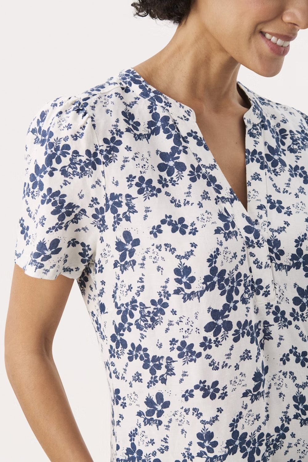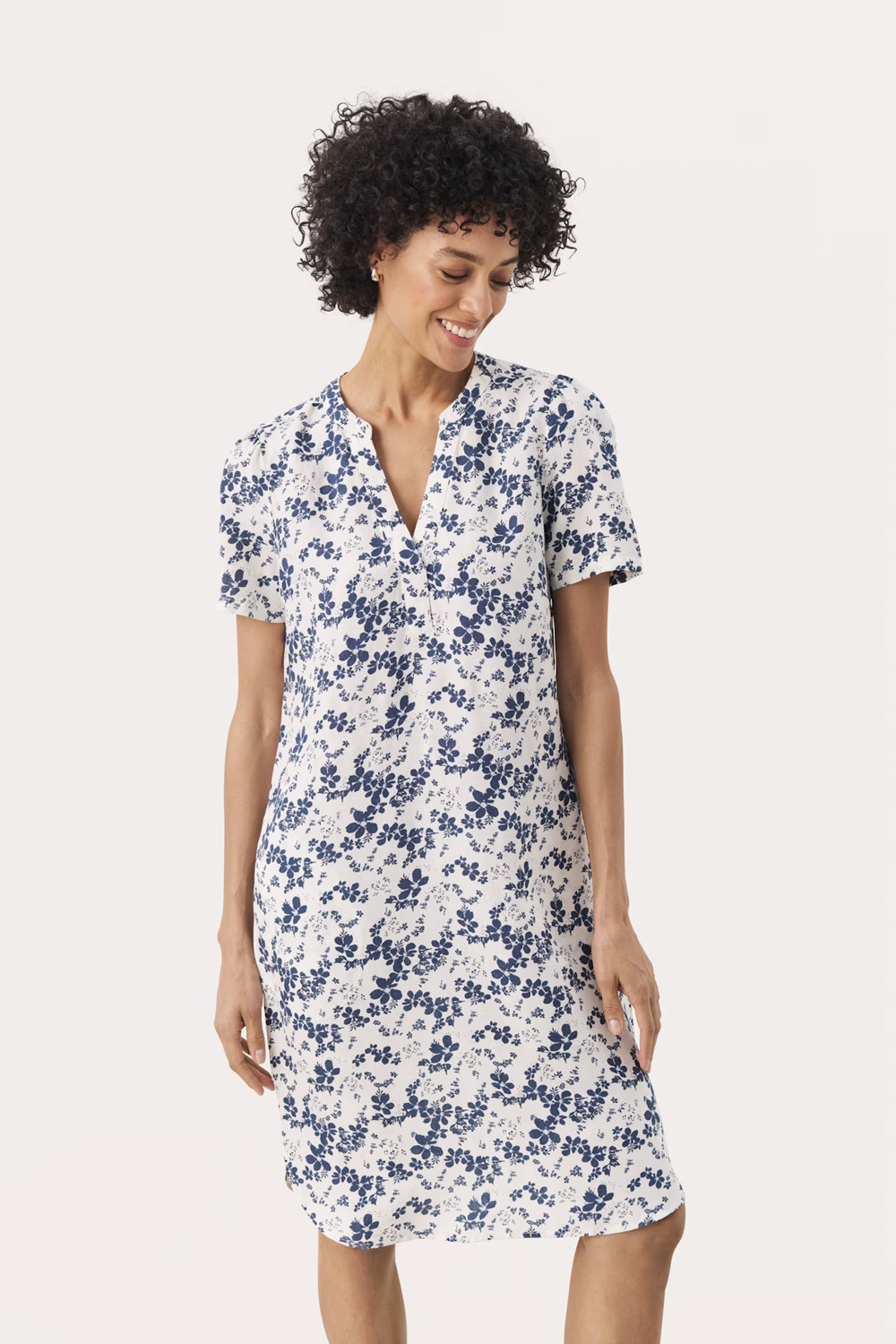 Klänning AminasePW DR är den perfekta kombinationen av stil och komfort för soliga dagar. Med sin knälånga design och linneblandning erbjuder denna klänning både en luftig känsla och en tidlös look. Den V-ringade halsen ger en subtil elegans, medan de korta ärmarna med lätt rynkade axlar tillför en feminin touch.