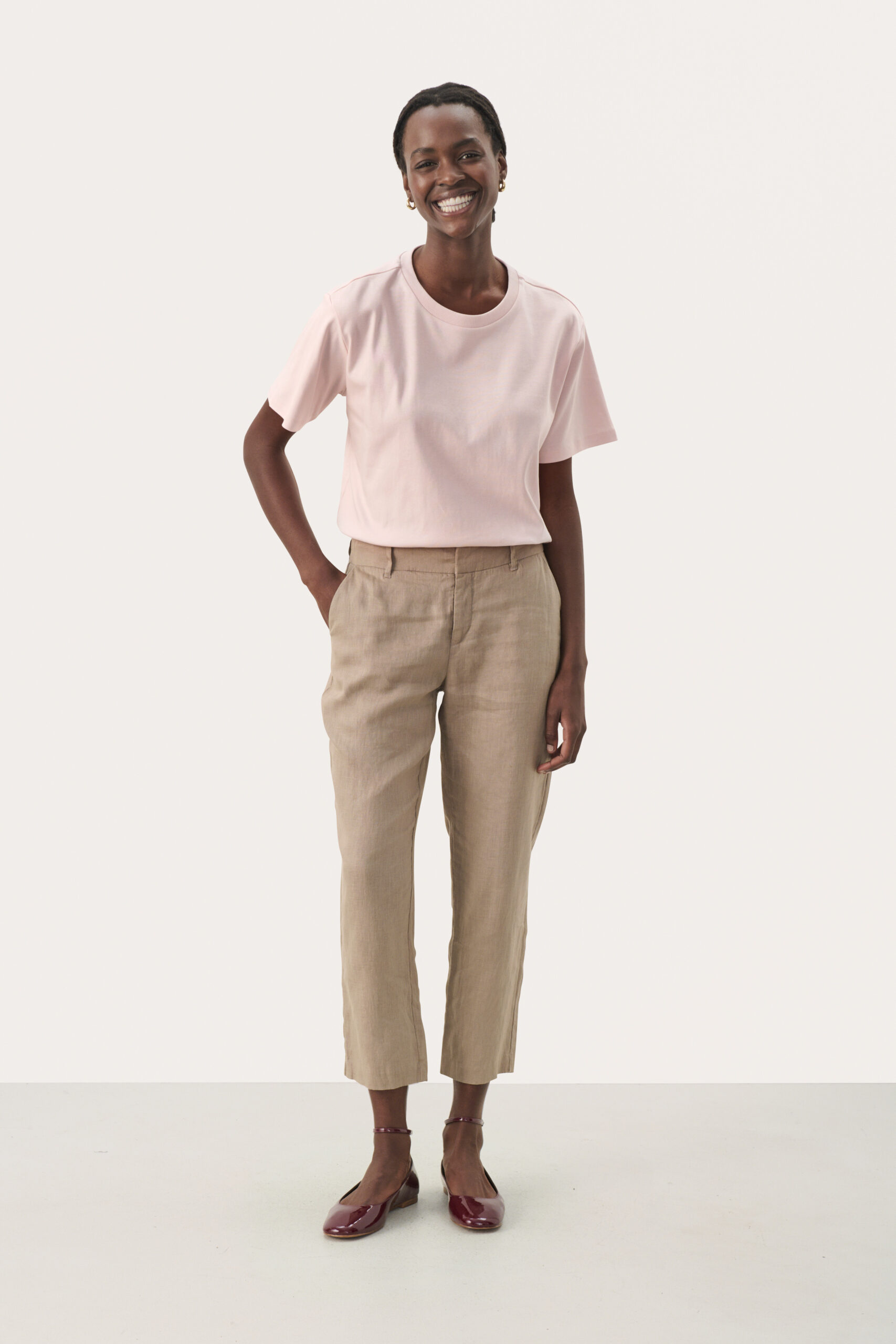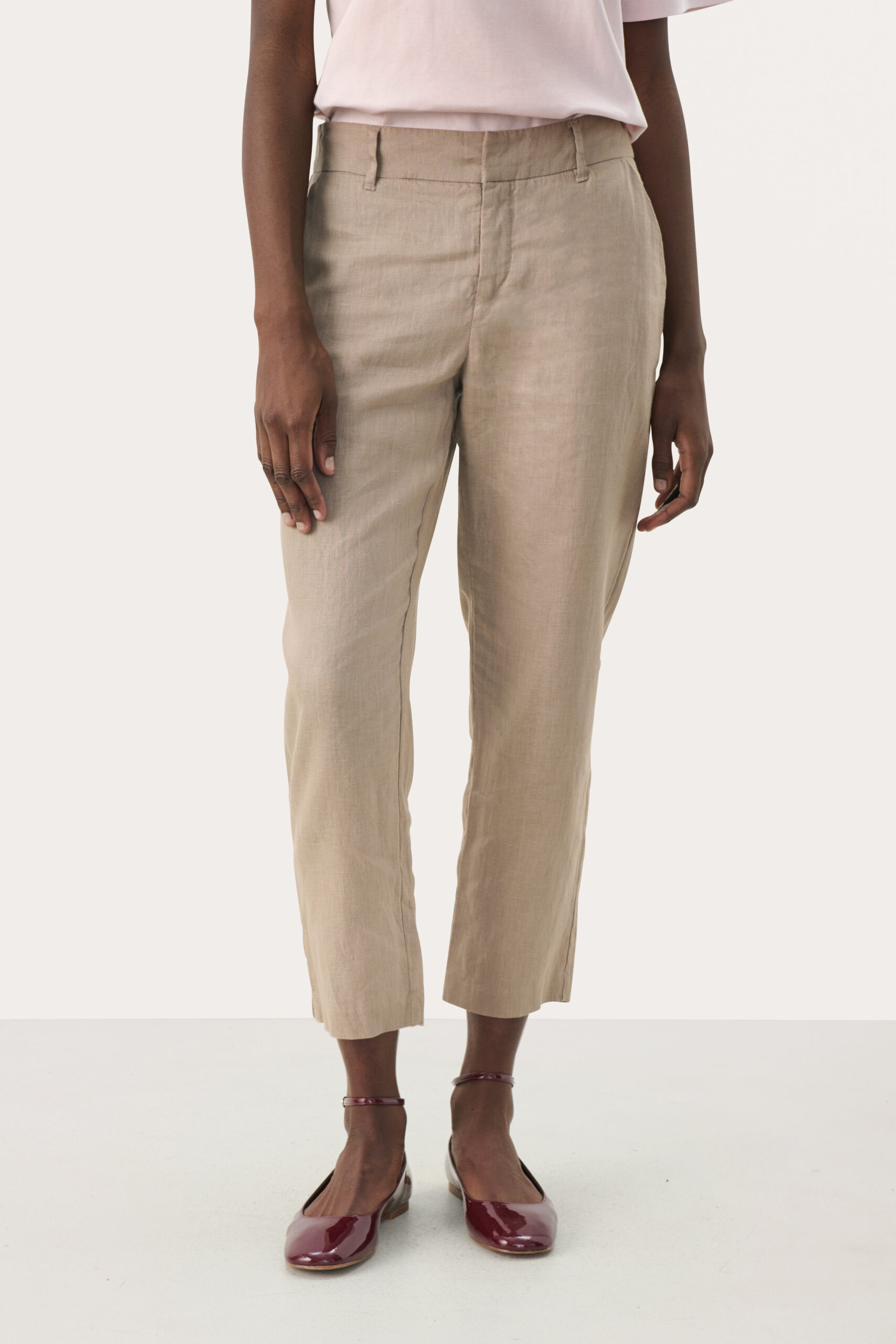 Upptäck Byxor SoffePW PA från Part Two, designade för att erbjuda både komfort och stil. Dessa byxor har en avslappnad passform med normal midja och avsmalnande benslut som slutar precis ovanför ankeln, vilket ger en modern och elegant silhuett. Tillverkade av 98% bomull och 2% elastan, erbjuder de en skön stretch som anpassar sig efter din kropp och ger rörelsefrihet hela dagen. Byxorna är utrustade med en bred linning med hällor och dolda hakar framtill, samt två snedskurna framfickor och två infällda fuskfickor bak, vilket ger både funktionalitet och en sofistikerad look. Beninnerlängden är cirka 72 cm i storlek 32. Perfekta för både vardag och arbete, är dessa byxor ett mångsidigt tillskott i din garderob. Enkla att underhålla med maskintvätt vid 40 grader.