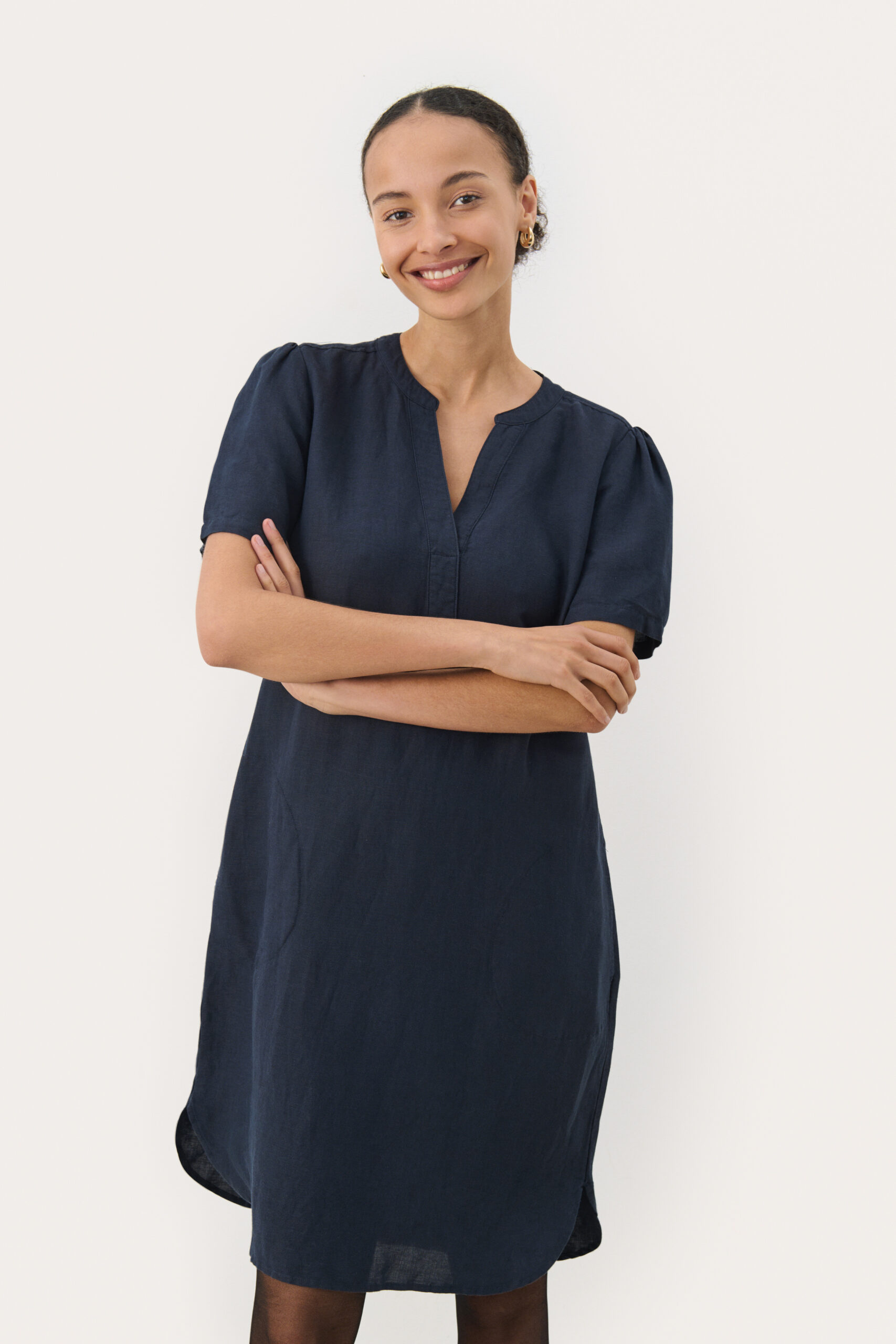 Upptäck Klänning AminasePW DR från Part Two, en elegant och bekväm klänning tillverkad av 100% linne som andas och håller dig sval under varma dagar. Denna klänning har en smickrande V-ringning och korta ärmar med rynkdetaljer vid axlarna, vilket ger en feminin touch. Med praktiska sidfickor och rundade sidosprund nedtill kombinerar den funktionalitet med stil. Den avslappnade passformen gör den idealisk för både vardag och fest. För bästa resultat, tvätta i maskin vid 30° skontvätt.