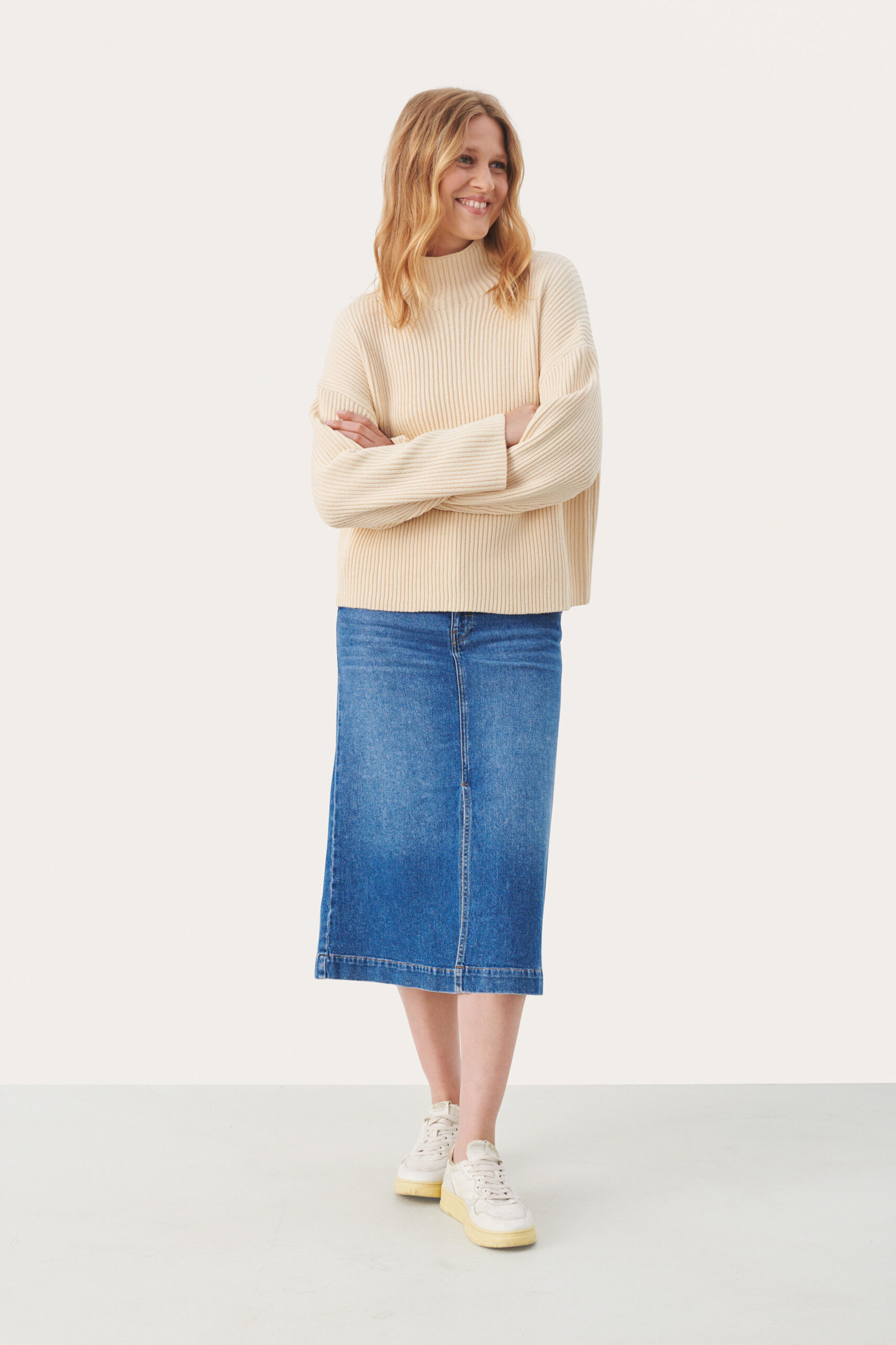 Denna pullover har en avslappnad men ändå sofistikerad passform som gör den mångsidig nog att bäras både till vardags och vid mer uppklädda tillfällen. De subtila stickdetaljerna ger tröjan en unik textur, samtidigt som den behåller en ren och enkel look. AngelinePW är lätt att kombinera med andra plagg, som smala jeans eller en kjol, för att skapa en stilfull outfit som utstrålar både elegans och avslappnad charm.
