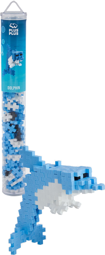 Den här Plus-Plus produkten kommer i ett rör som är perfekt när man skall resa och som lätt kan återanvändas som förvaring till dina Plus-Plus. Med hjälp av 100 Plus-Plus kan du bygga en delfin. Det medföljer även en instruktionsmanual med detaljerade steg-för-steginstruktioner. När du byggt klart kan du bygga precis vad du vill, bara din egen kreativitet sätter dina begränsningar.