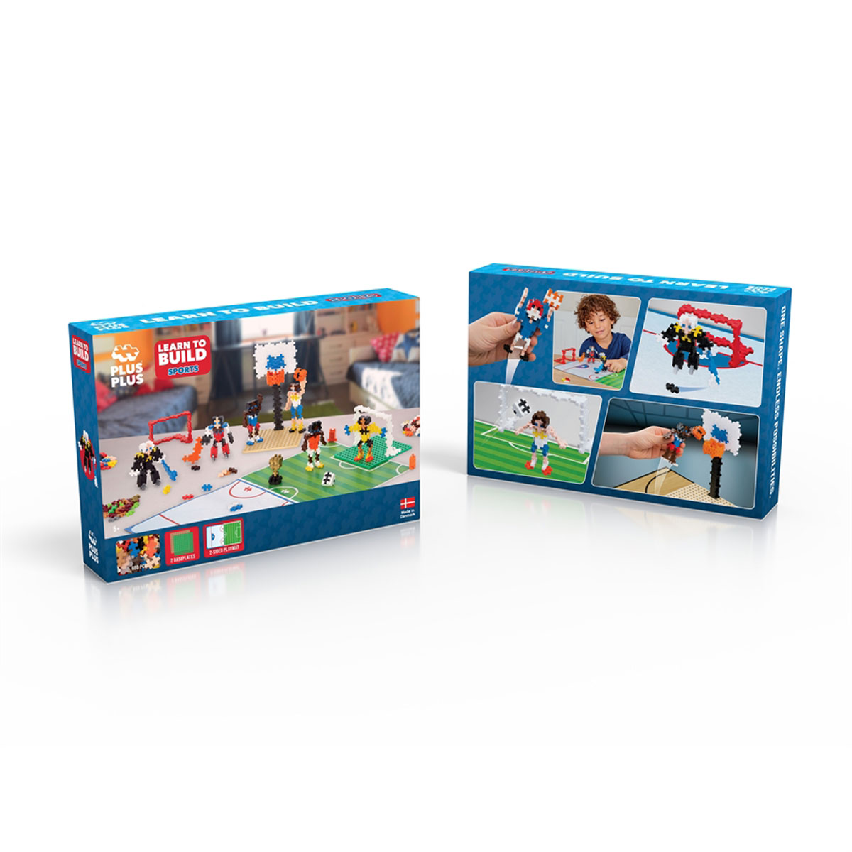 Setet innehåller 600 delar, 2 basplattor och en 2-sidig spelbana där barnen kan visa upp sina sportbyggen.