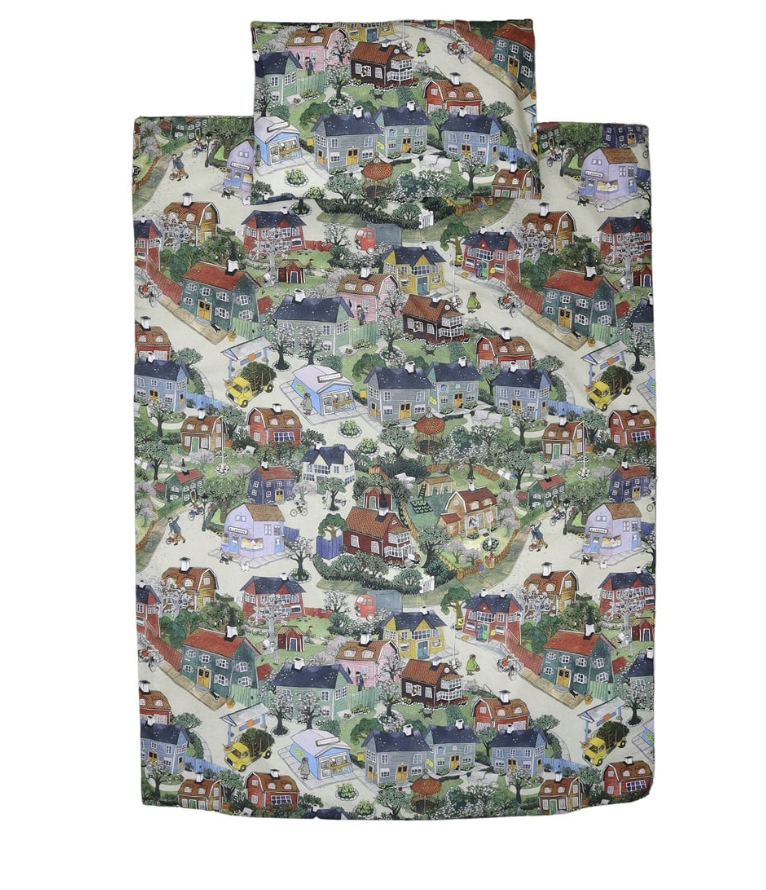 Underbart bädd-set för spjälsäng med motiv från Lotta på Bråkmakargatans lilla by. Många fina detaljer och story-telling som garanterat kommer att uppskattas av både stora och små. Astrid Lindgren är en oerhört älskad svensk författare. Hennes barnböcker har sålt i 165 miljoner exemplar och de har översatts till 107 språk! I många av hennes berättelser har Ilon Wikland varit illustratör och vi på Rätt Start har glädjen att få använda hennes verk på våra produkter. Påslakan och örngott är tillverkat av ekologisk bomull av hög kvalitet. All tillverkning kvalitets-kontrolleras och dokumenteras i enlighet med ställd kravspecifikation. Alla Rätt Starts säng-textilier är även certifierade enligt den hårda person-miljöstandarden Öko-Tex Standard. Det garanterar att produkten inte innehåller några giftiga ämnen eller allergener.