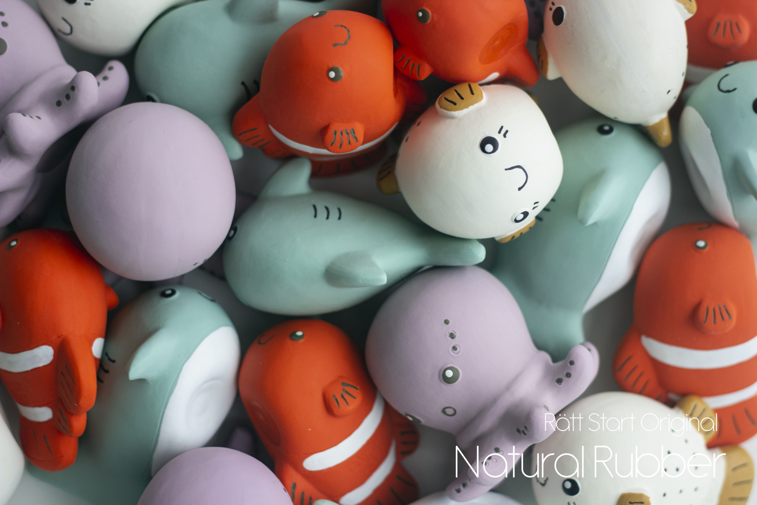 Mjuka och lekfulla djur i naturgummi som kan användas som badleksak, bitis eller varför inte som inredning i barn-rummet! Ekovänligt material som är helt fritt från BPA, PVC och ftalater. Leksakerna är även hålfria så att man slipper mögel inuti. Naturgummi är ett naturmaterial som kan återvinnas vilket också gör att materialet åldras med tiden, därför har vi valt att lägga produkterna i en necessär som skyddar från luft och fukt.
