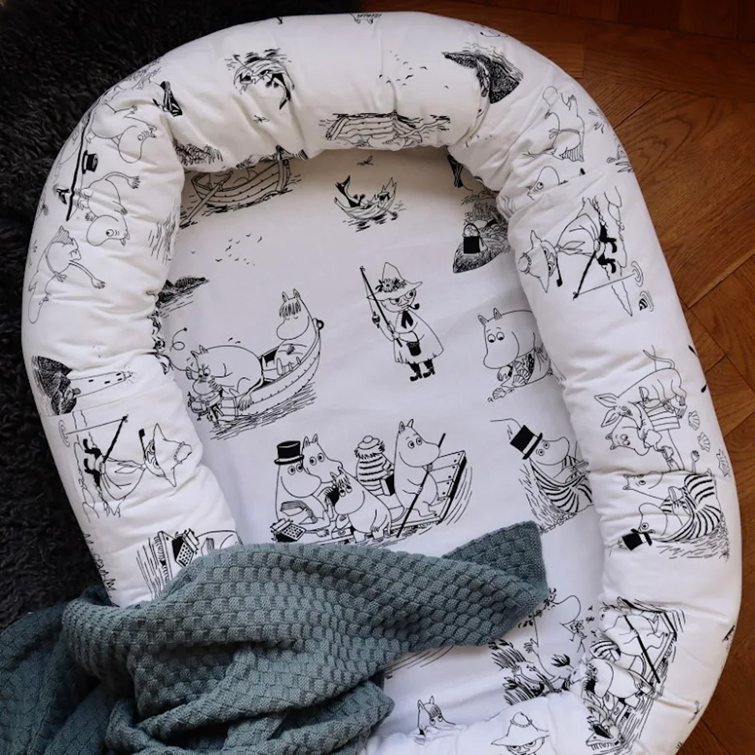 Babynest Mumin vit/svart – Mysig och trygg viloplats