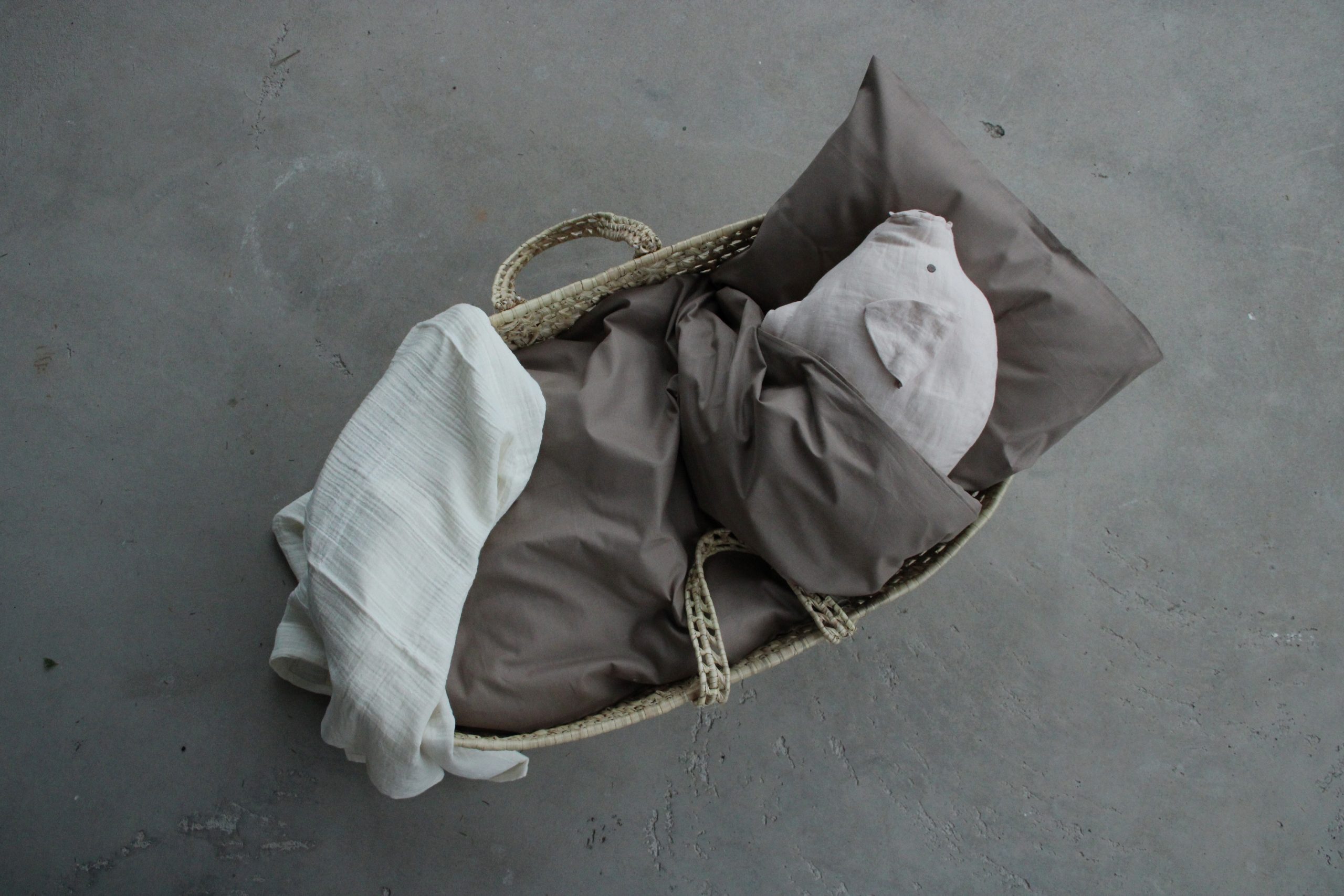 Detta påslakanset är speciellt designat för vagn eller vagga och ingår i vår enfärgade kollektion. Setet består av ett påslakan och ett örngott i 100% ekologisk bomull, vilket ger en mjuk och skonsam känsla mot barnets känsliga hud.