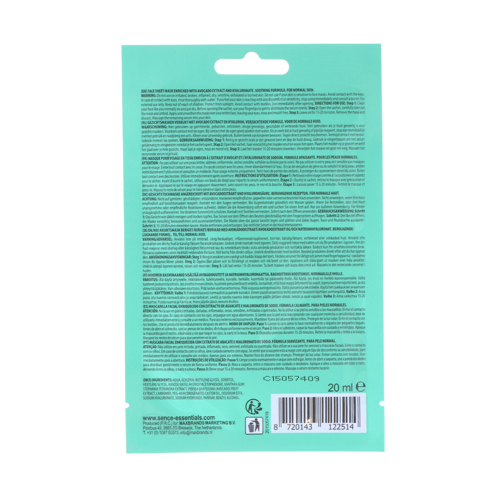 Masken innehåller en mjukgörande formula berikad med avokadoextrakt.