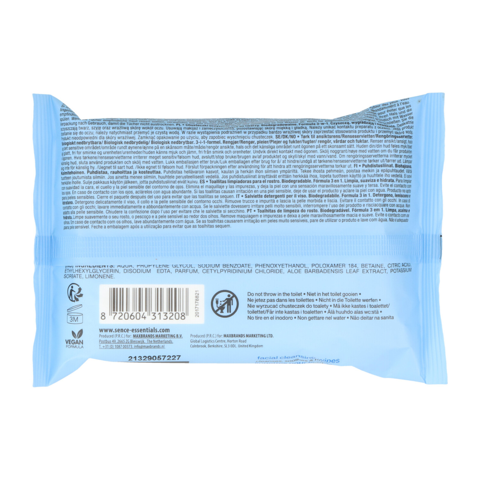 Påse med 20 rengöringsservetter för ansiktet av märket Sence.