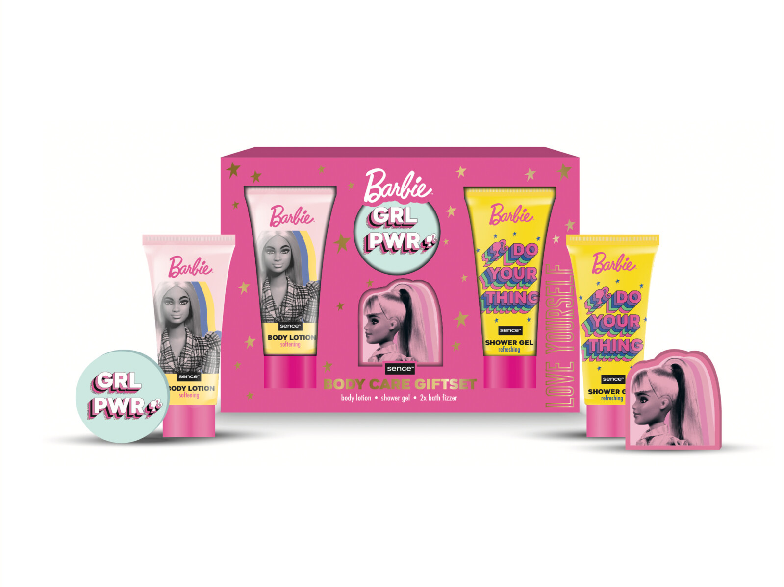 Sence Barbie Power Bodycare presentset: Kroppslotion, duschgel och badbomber