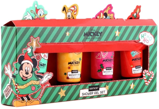 Presentförpackning med 4 doftande duschgel med bilden av Musse Pigg och hans vänner. Detta fyrpack med shower gels finns i färgerna persika, jordgubbe, melon och apelsin. Varje flaska på 50 ml är full av underbara dofter och mjukgörande ämnen. Förpackningen är dekorerad med favoritfigurerna från Disneys värld – Mimmi, Musse, Kalle Anka och Långben. En rolig och uppfriskande duschupplevelse som garanterat får dig att le. Presentförpackningen Musse Pigg är den perfekta gåvan till dig själv eller någon du tycker om. Varje gång du använder dessa duschgel kommer du att påminnas om den glada atmosfären. Den perfekta presenten till alla som fortfarande älskar de klassiska barnkaraktärerna.