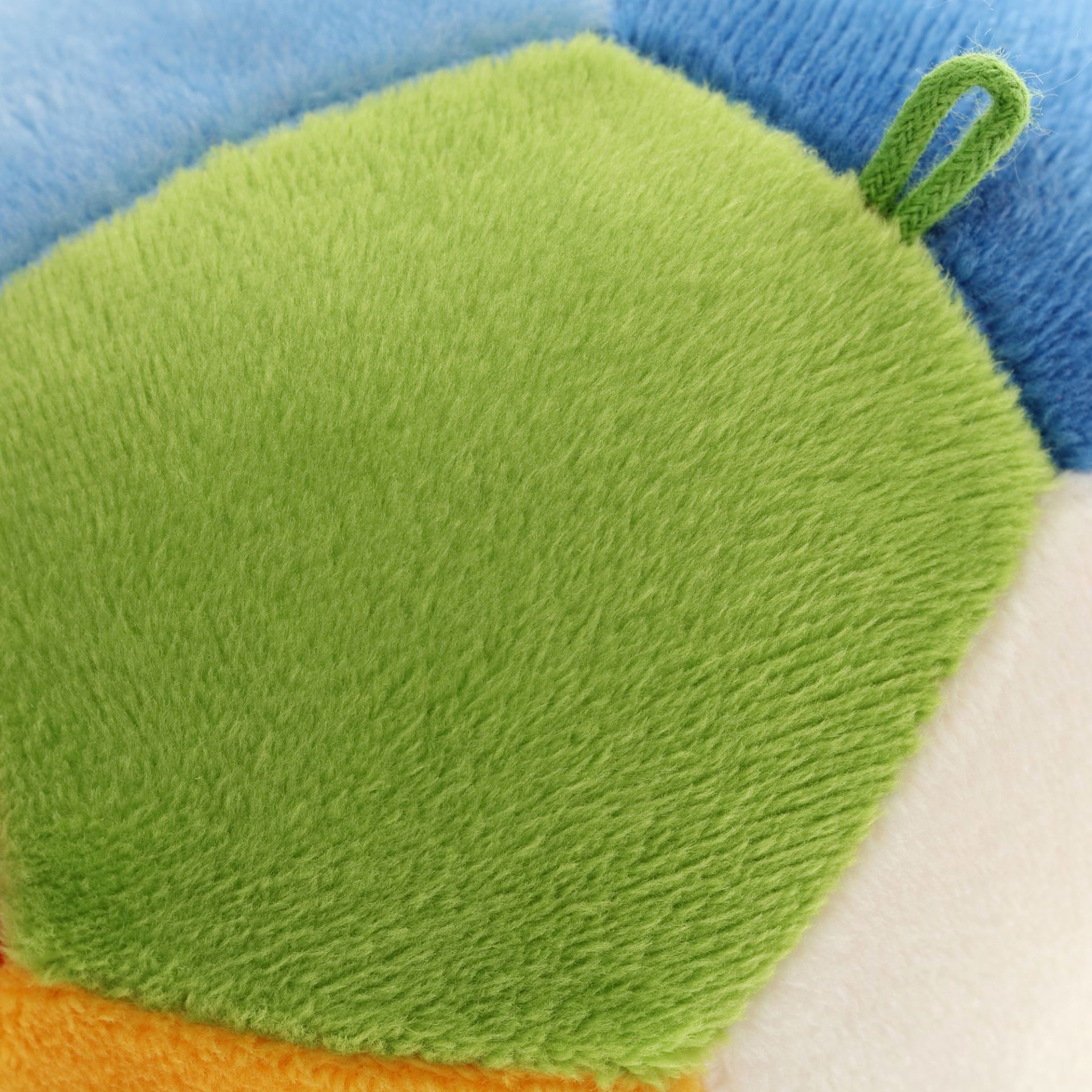 Bollen har en textilögla som gör det enkelt att fästa den vid en aktivitetsbåge eller bilstol, vilket gör den lätt att ha med sig på språng. Den är designad för att vara säker för små barn och är enkel att rengöra – bara maskintvätta på skonsamt program vid 30°C (utan sköljmedel).