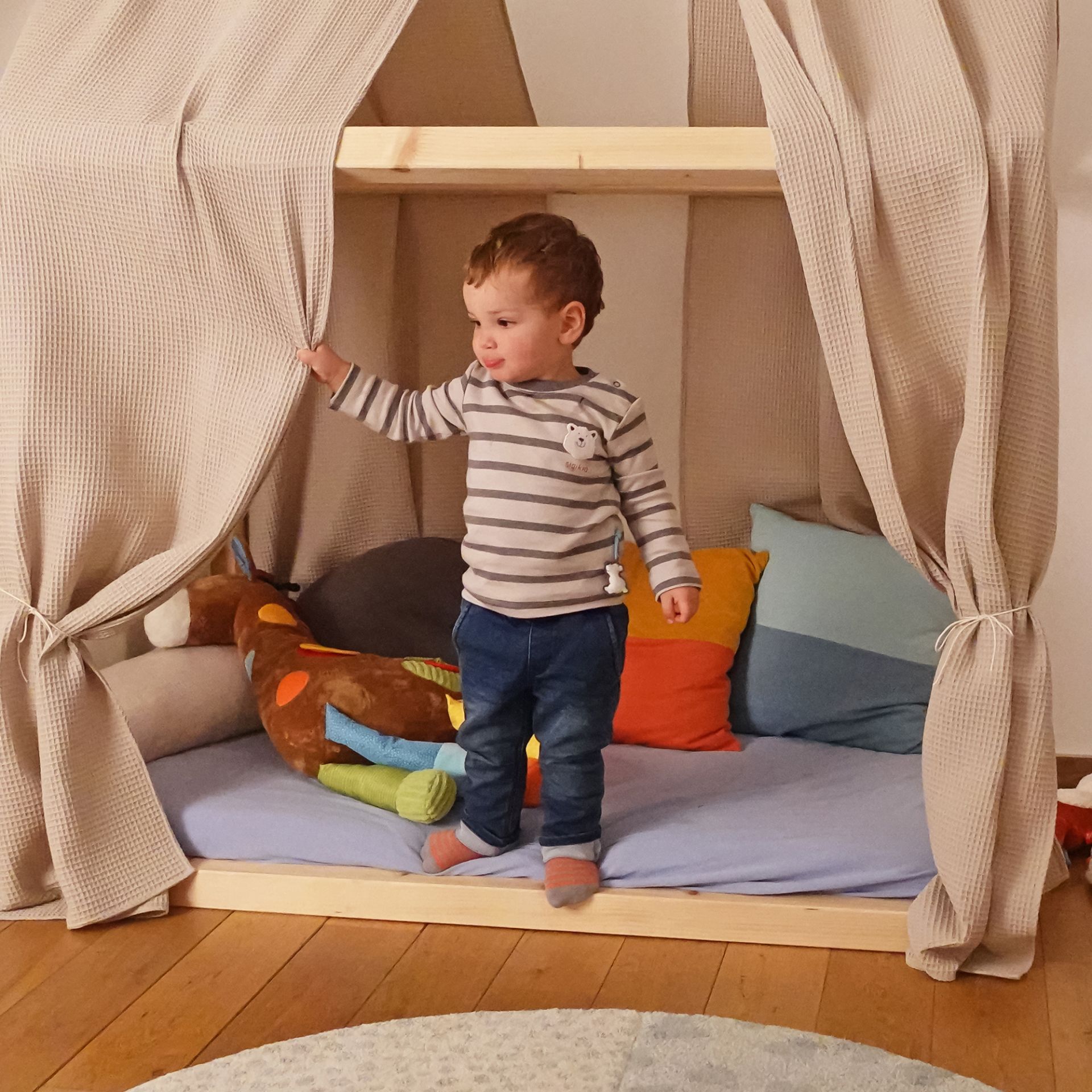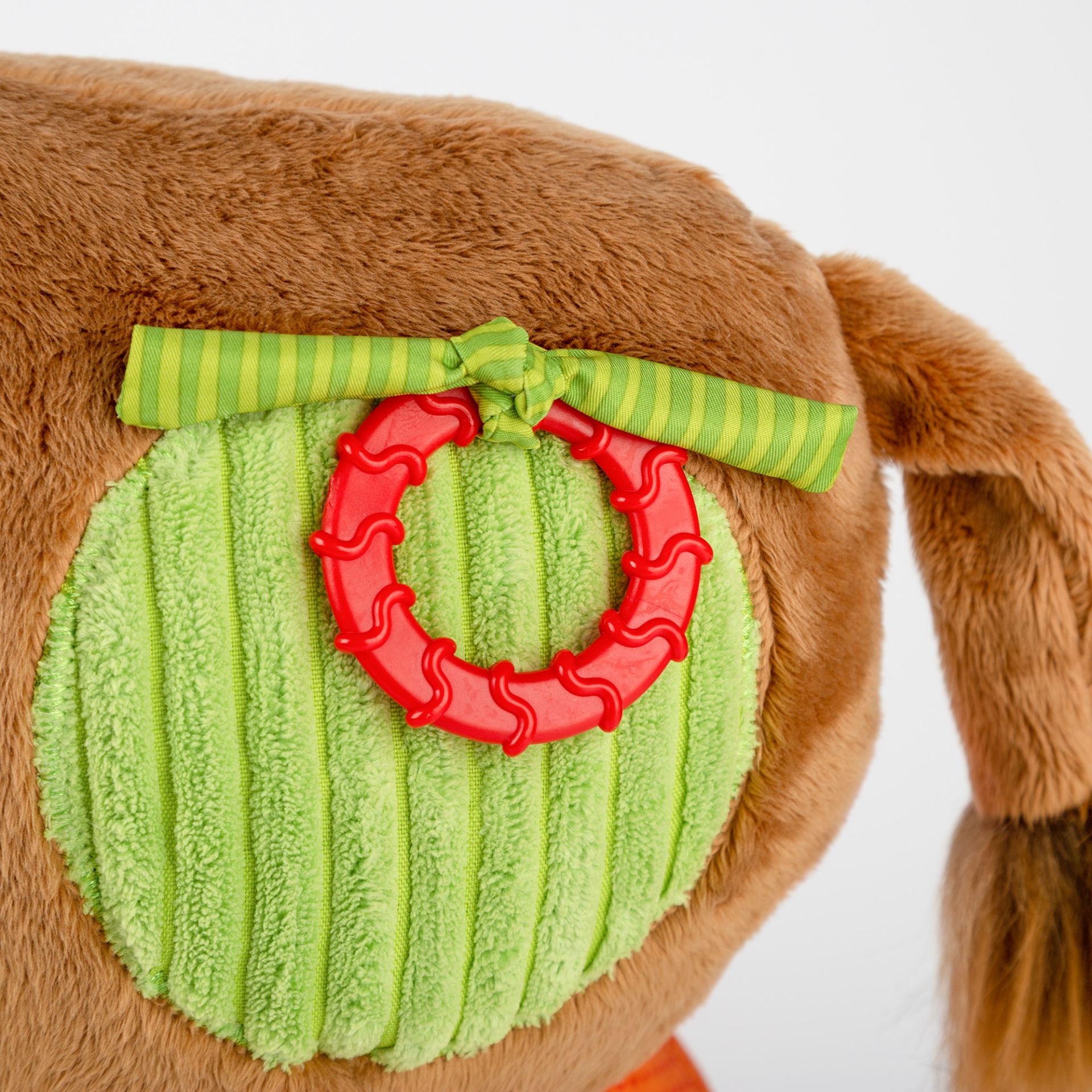 Lätt att rengöra – giraffen kan maskintvättas på ett skonsamt program i 30°C (utan sköljmedel) efter att alla avtagbara delar har tagits bort.