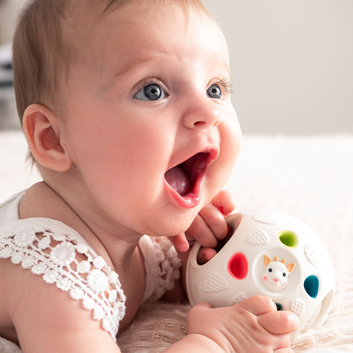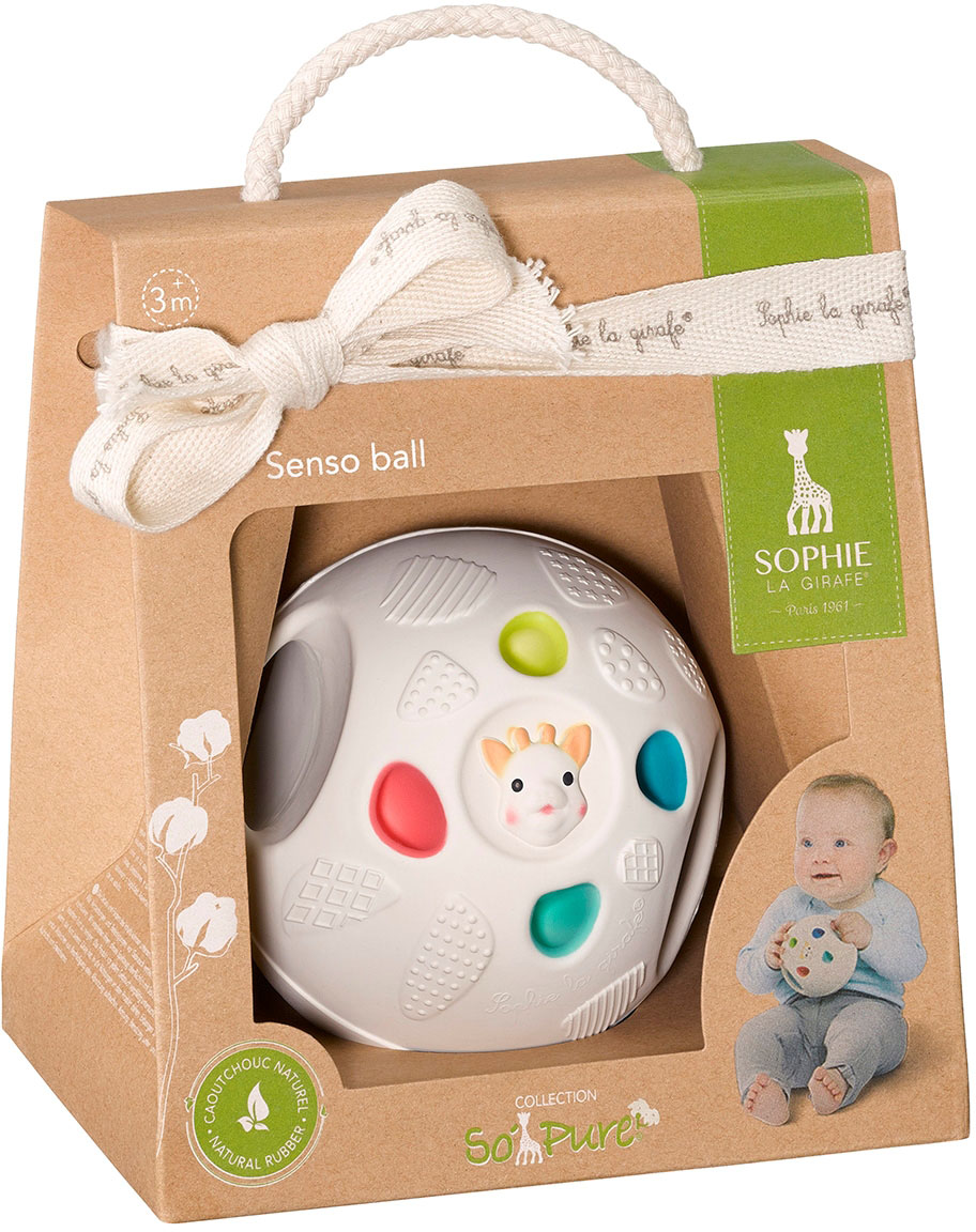 Upptäck en värld av lek och utforskning med So Pure Senso Ball. Denna sensoriska boll är tillverkad av 100% naturligt gummi och är perfekt för små barn. Med sina livliga färger, små hål och en mängd olika texturer som rundade prickar, linjer, stjärnor och rutmönster kan barnet upptäcka en massa aktiviteter. So Pure Senso Ball är lätt och ergonomisk, vilket gör den enkel att greppa tack vare sina två integrerade handtag. Dess dimensioner gör den perfekt för små händer att utforska och leka med. Denna produkt är lämplig för barn från 3 månader och är ett utmärkt val för att stimulera deras sinnen och motoriska färdigheter.