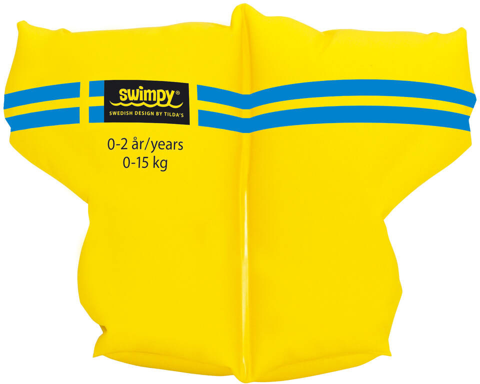 Swimpy Baby Neutral uppblåsbara simarmband för spädbarn och små barn. Armbanden är tillverkade i hög säkerhetskvalitet med dubbla luftkammare och säkerhetsventiler och i klar gul färg för maximal synlighet. Swimpy uppblåsbara armband har en ergonomisk design som ger barnet rörelsefrihet och komfort vid vattenvanning. Armbanden kan användas både i havet och i poolen.