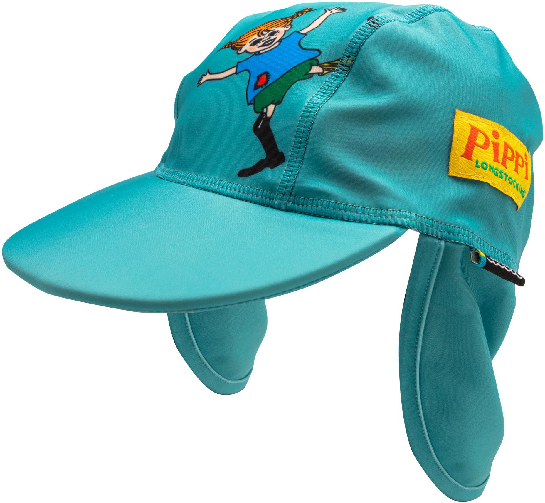 Turkos UV-keps med Pippi motiv som matchar resten av den turkosa Pippi UV-serien.