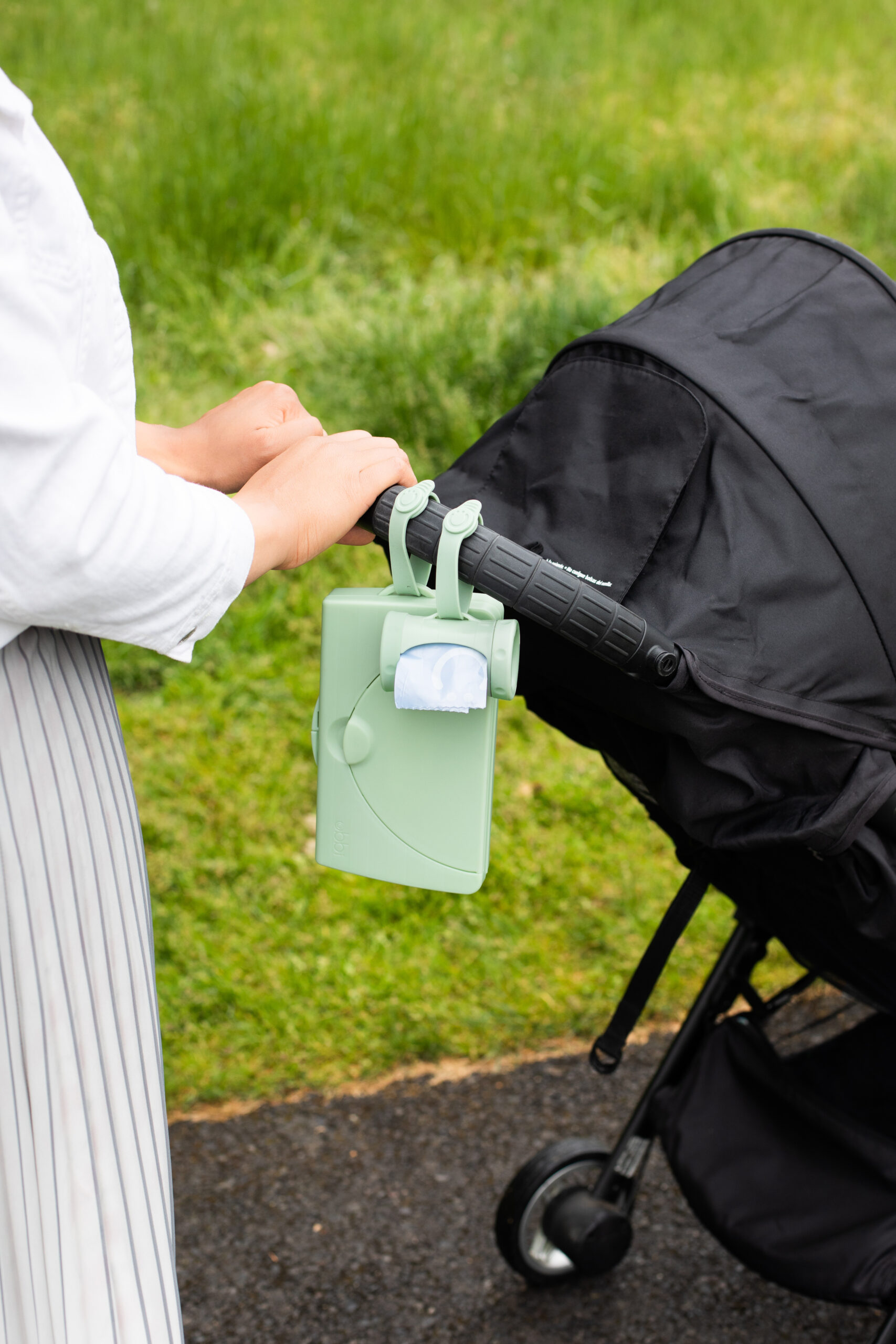 Med en bekväm silikonsnodd kan dispensern enkelt hängas på en barnvagn eller blöjväska, vilket gör den lättillgänglig när du är ute och reser med ditt barn. Denna praktiska funktion gör det enkelt att alltid ha blöjpåsar till hands.