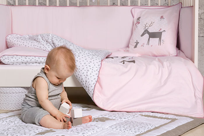 Tvåsidigt kuddfodral i 100% Oeko-tex certifierad bomull som ger barnrummet lite extra piff. Den ena sidan med Forest Friends och den andra med Grey Leaf.